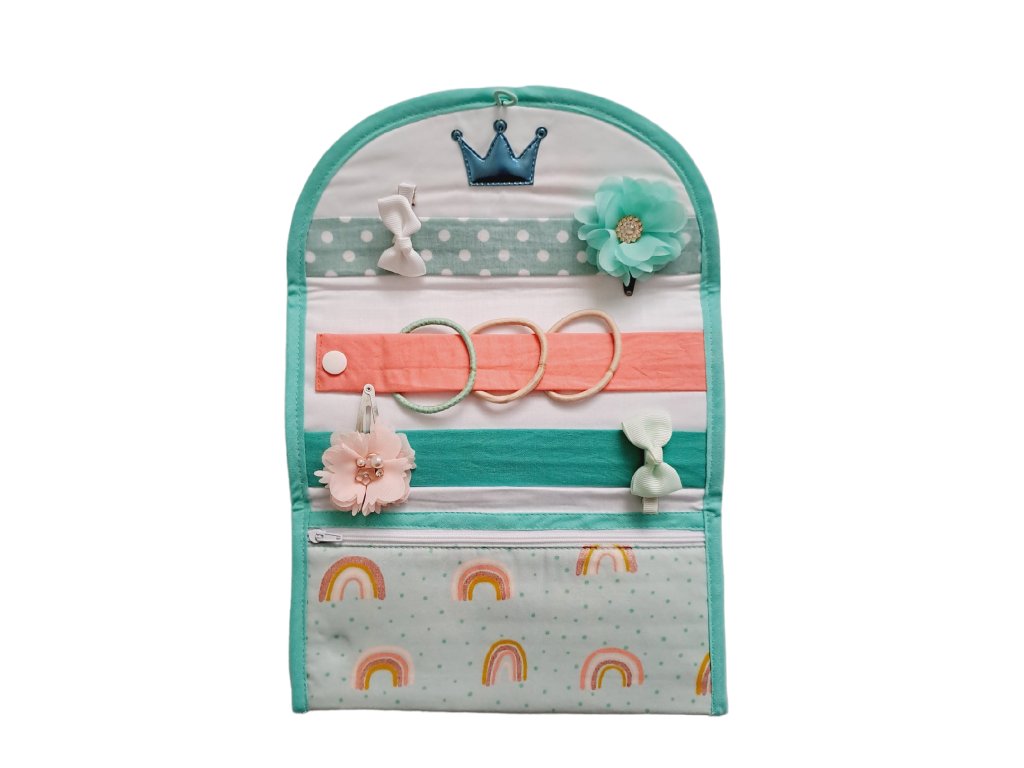 Vrecko na zips v dolnej časti sponkovníka poslúži na uloženie menšieho hrebeňa, zrkadielka, či štipcov do vlasov.